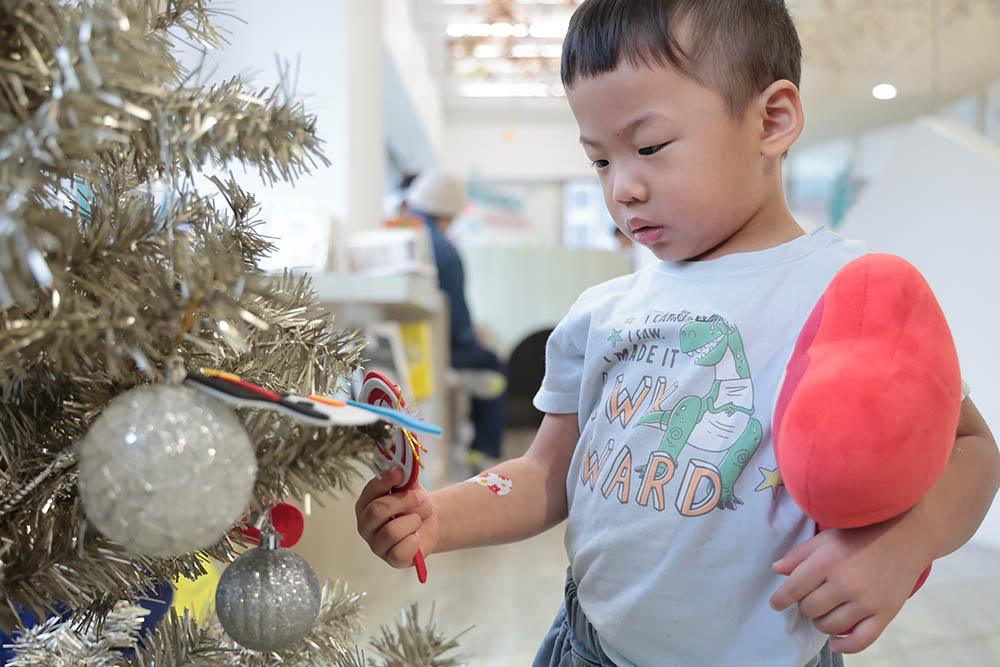 哇!姿姿老師讓台北空間下雪了,大手小手收集「雪」棉花,拋一拋、摸一摸,最後使用材料製作心仔,佈置成一個耶誕花圈!親子一同創作的過程中,孩子開心、家長放鬆,暖暖的笑容是最美的節日禮物。