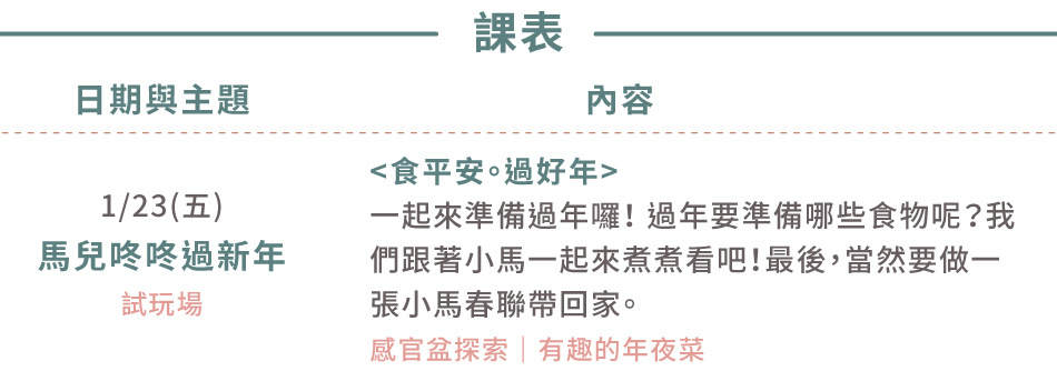 - 此為親子課,報名數量選1即代表1組,1組限一位家長+一位小孩參加。