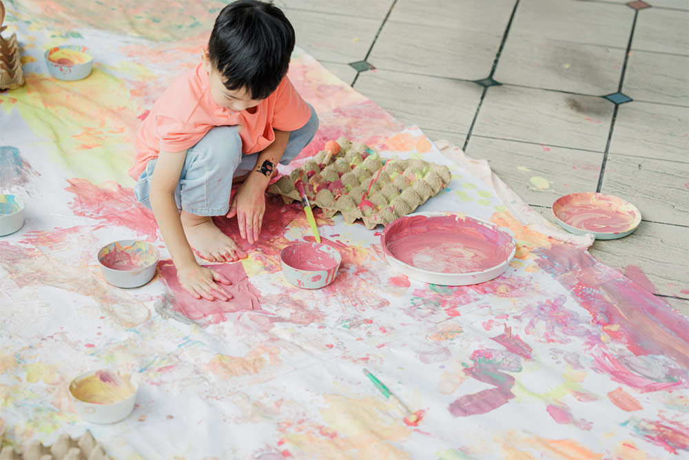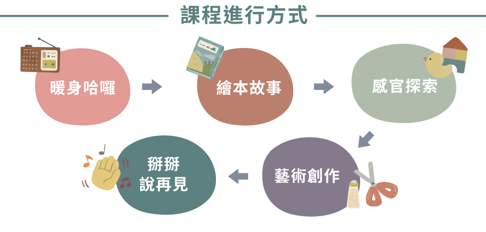 以「五感覺察 × 故事引導 × 藝術創作」為核心,從孩子熟悉的日常開始:看得見的顏色、摸得到的材質、聽得到的故事、記得住的生活情境,孩子創作的過程中,不只是做一件作品,而是在練習探索自己、練習表達,也慢慢建立內在的安全感。