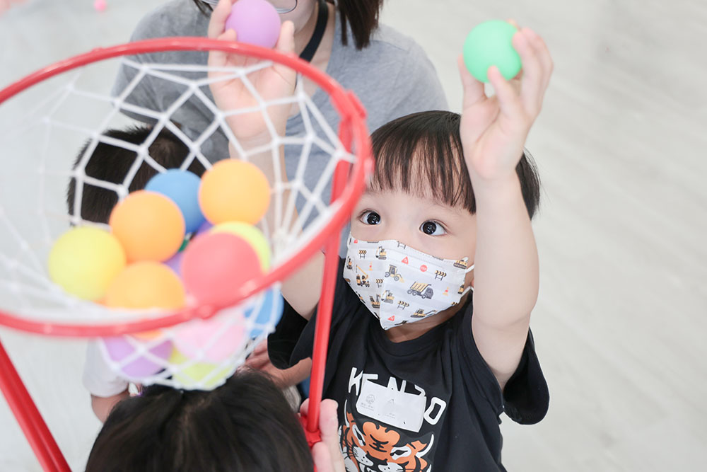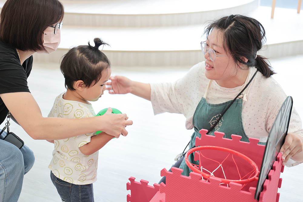 透過每堂課之間不同的親子體能遊戲,除了讓孩子們練習團體中的人際適應,有禮貌的「請、謝謝、對不起」,也依循孩子的成長發展,練習包含認知、身體動作、語言與創造力等等。同時,也示範給家長們,親子間可以一起玩的體能遊戲,在天氣不好、無法帶孩子外出放電時,居家可以繼續玩!
