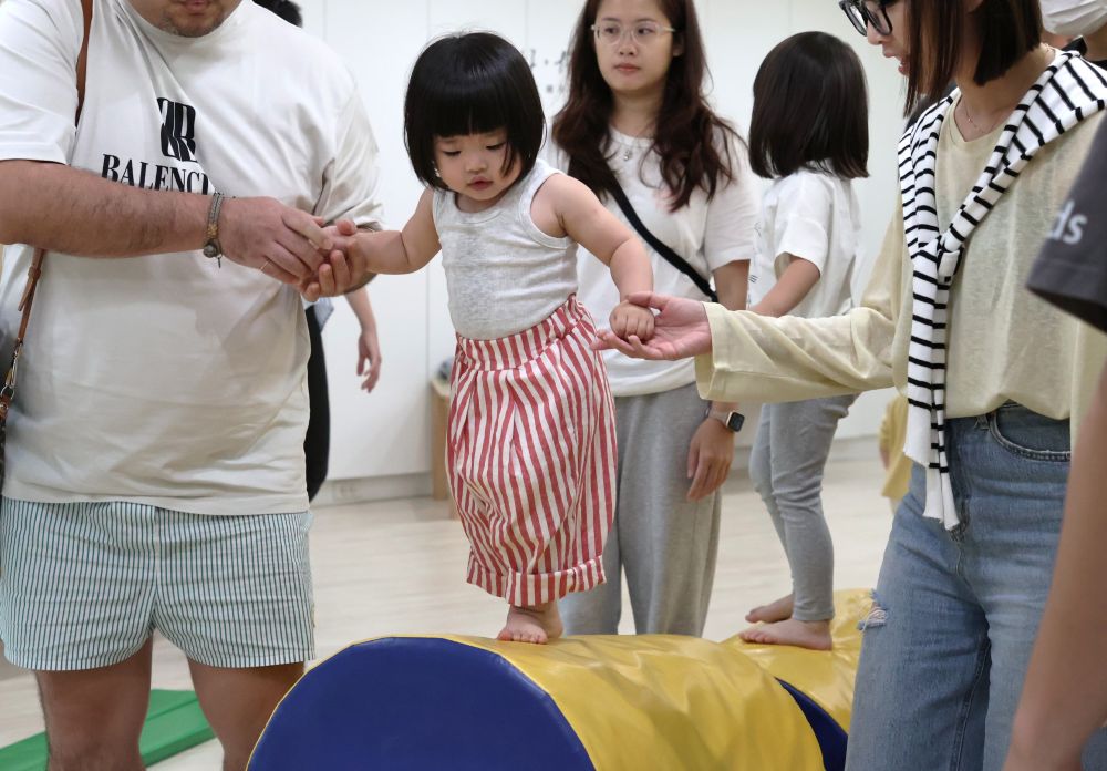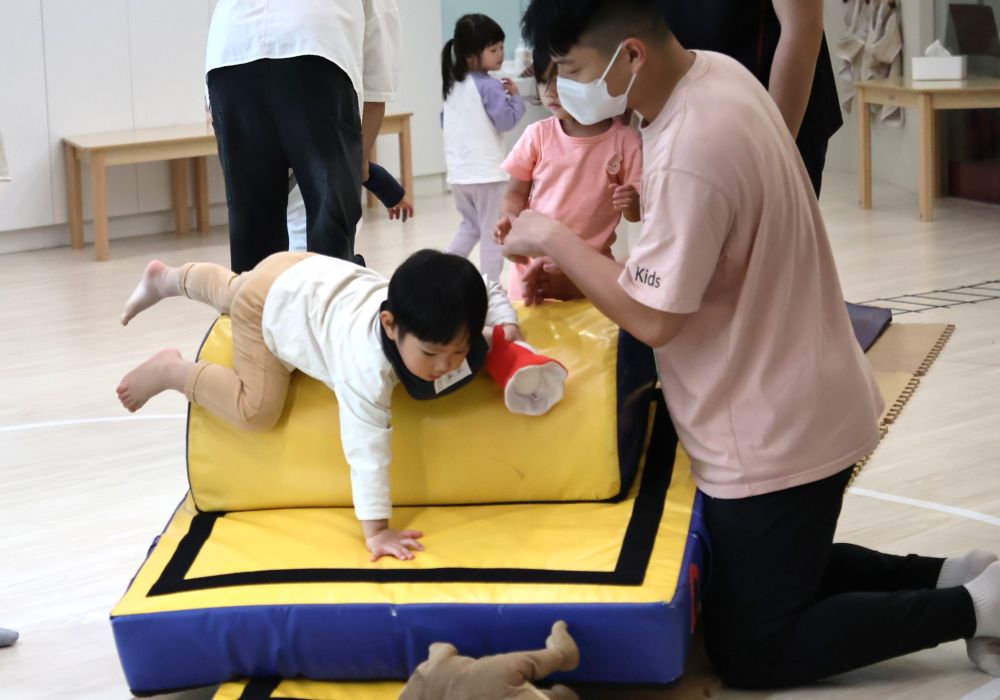 一堂專為1.5至3歲孩子設計,增進感覺統合的幼兒體操課程,結合四大體能活動:體感、平衡木、翻滾、單槓,並依每位孩子的程度調整並給予輔助,適切地幫助孩子提升前庭覺、觸覺與本體覺的整合能力,促進身體協調性與大小肌肉發展。