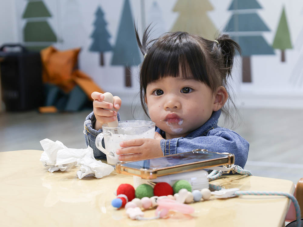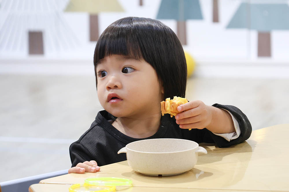 當孩子拿起小湯匙、自己抓起水果時,不只是吃,更是在練習控制力與自信心。每堂課的「點心食光」提供適合1.5~2.5歲孩子能自己吃的小點心,如小蛋糕與各式水果,從拿取、抓握到品嘗,讓「吃」也成為學習的一部分,親子一起享受「吃得開心、學得輕鬆」的親子感官時光!