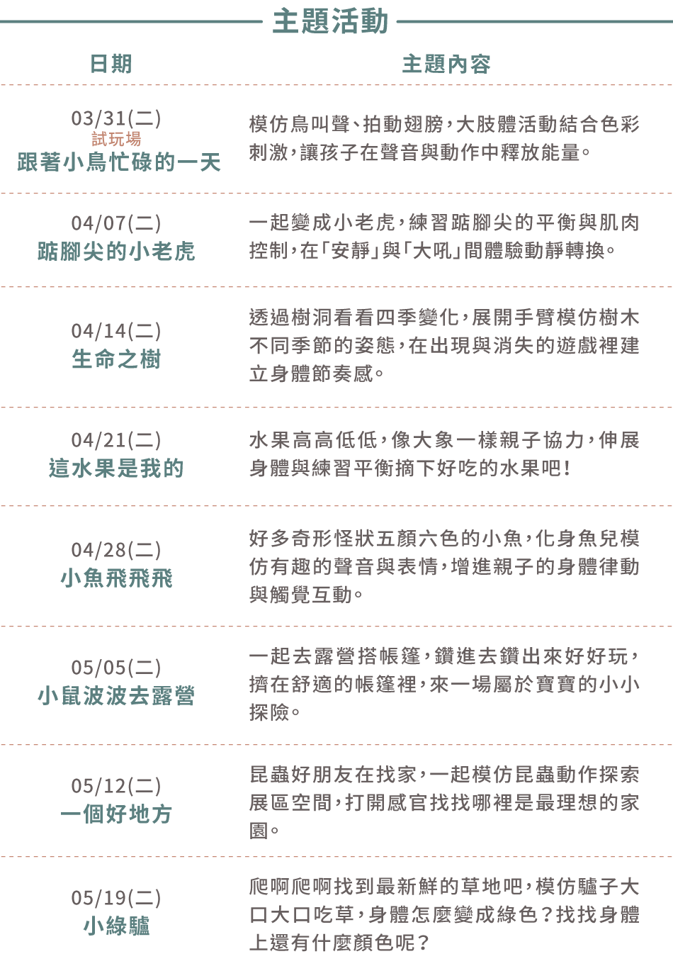 - 時間:週二上午 10:00-11:00 (60+20分 暖心茶&育兒聊聊)