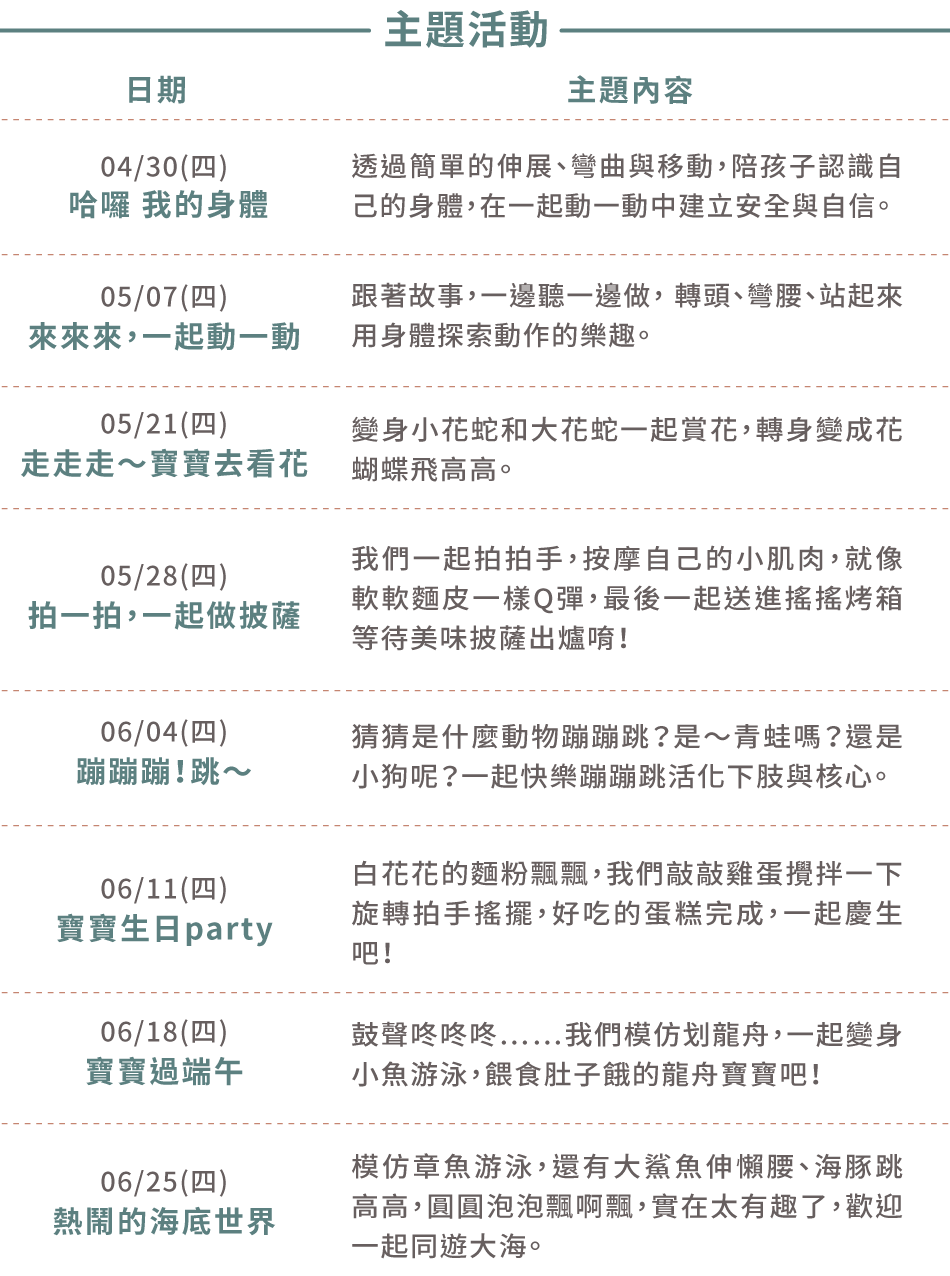 【台北】寶寶|愛的抱抱(4-6月週四下午) 關於課程
