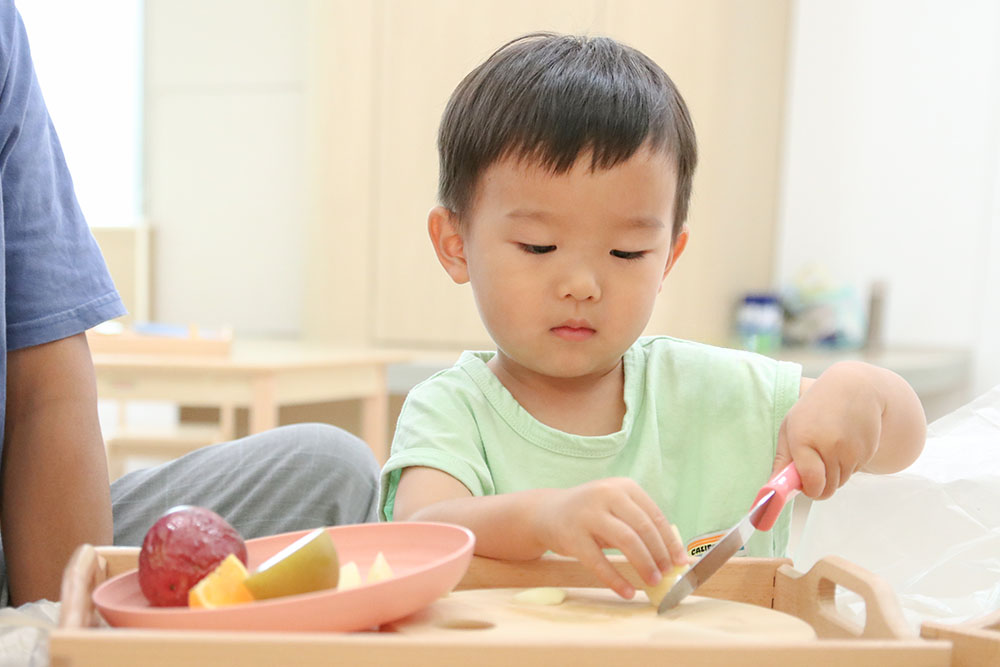 蒙特梭利博士說:「手是孩子最主要的老師。」當幼兒發展「壓、抓、倒、套」等看似簡單的動作時,其實是連結大腦與身體的重要練習。五力初階課程從生活情境出發,讓孩子透過觸摸、壓印、倒水、套圈等活動,建立動作控制與手眼協調力,也慢慢累積語言表達、團體互動與自我照顧能力。這些看似小小的練習,其實正在為未來的學習力建立基礎。