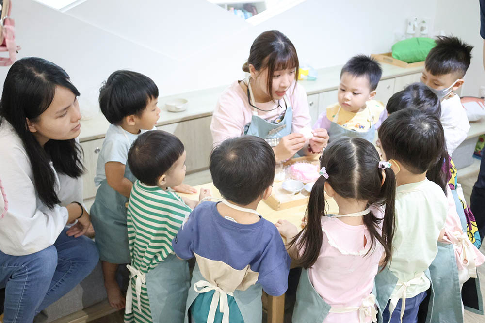 2.5-3歲的寶貝,對周遭事物充滿好奇,除了是語言的爆炸期,也正經歷自我為中心的時期;把握孩子這段較以自我為出發的時期,透過歡樂有趣的律動、歌唱、顏色美術手作、操作玩具等的練習,漸漸培養寶貝照顧自己日常生活的能力,自己吃水果、收摺衣服、倒水等,為日後孩子們各項學習奠定基石。