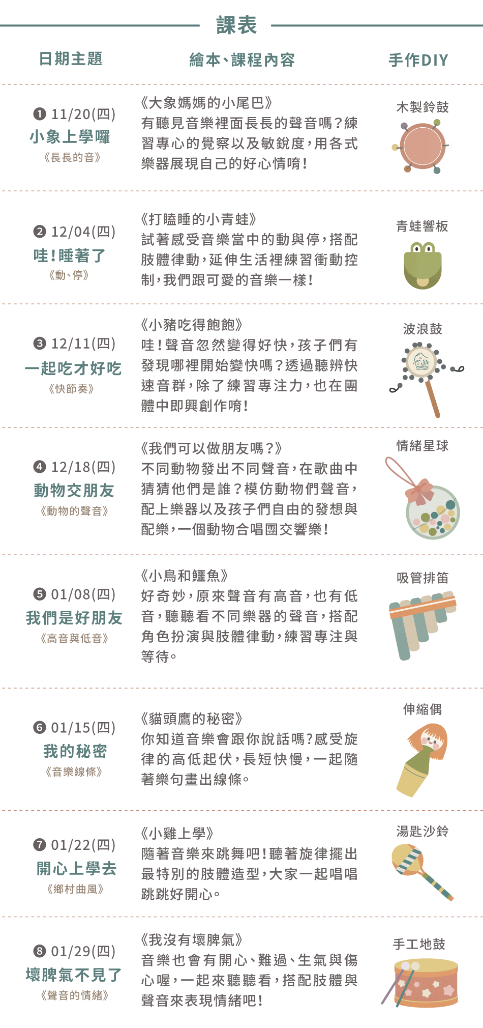 【台中】2025好心情動物音樂祭(11-1月週四上午) 關於課程