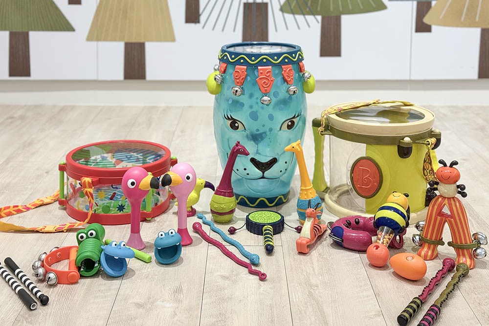 - 適合抓握的小樂器探索,強化追視與雙手抓握動作。