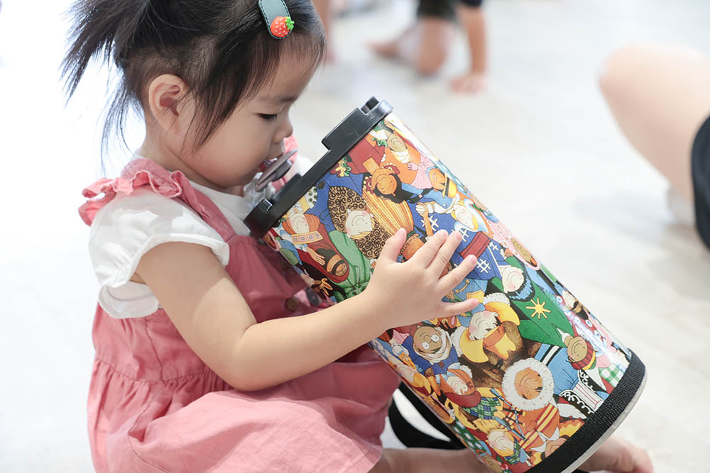 彼此是好朋友的小鳥和鱷魚,藏著祕密的貓頭鷹,還有愛上學的小雞,每種可愛動物,都有自己專屬的聲音,孩子們知道這些是誰的叫聲嗎?跟著每週不同的動物繪本主題,邀請孩子們一起用木琴、音磚、海洋鼓、邦哥鼓等等各種樂器,練習聽聽音樂中的不同,好玩的急音、優雅的長音,也用各自的樂器,即興表達自己當天的好心情!音樂是我們與孩子在練習表達想法或者心情時,好用的媒介之一喔!感受音樂的同時,也透過不同的媒材,或廢材再次回收利用,做出專屬樂器,瞧瞧孩子們的架式,一場好心情音樂祭,正要展開囉!