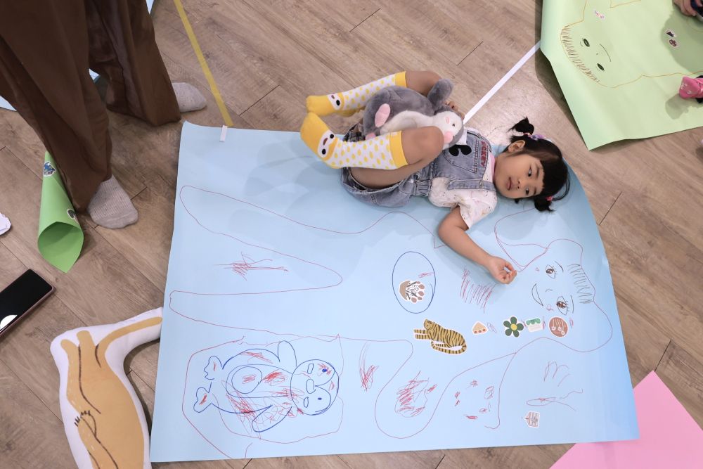 這場親子限定試玩場,前半小時大人聽講座,同時孩子交由老師帶領繪本、小遊戲和DIY體驗,後半小時親子一起透過遊戲體驗正念,在笑聲中學會安定與同理,也更靠近彼此。