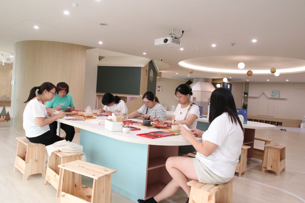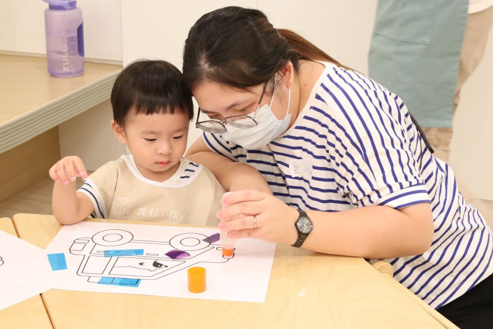 透過每週漸進式讓孩子適應空間環境,慢慢可以獨立與老師們待在教室中參與課程活動,趁著這個空檔,就是爸爸媽媽爺爺奶奶自己的me time囉!每週除了可以來杯不同的冷熱飲品,趁著有老師們幫忙顧著孩子的時間,一起參加每週不同的療癒活動,或者與社工聊聊育兒碰到的難題,也可以自己找一個角落,看一本書、稍微休息,準備充飽電、在育兒路上再出發!