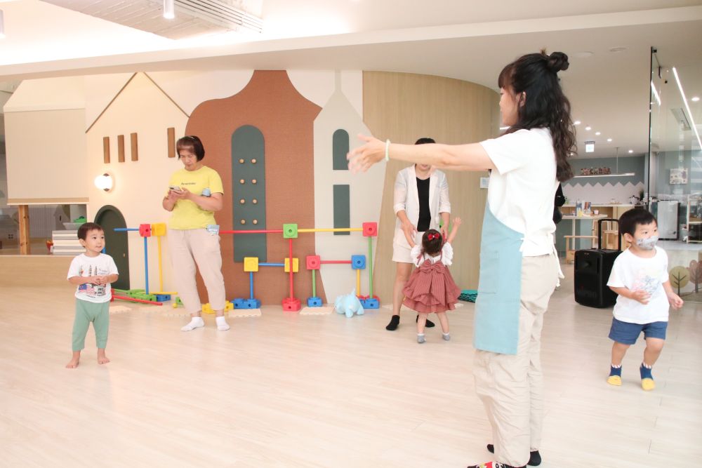 一起身體動一動、暖暖身跳個舞,再來是最喜歡的繪本故事,接著會依照繪本延伸一起玩遊戲與活動,進入自由探索空間的時光後,大家會再一起使用不同的媒材進行創作,最後結束前,大家再一起收玩具整理環境,跳舞一起說再見囉!