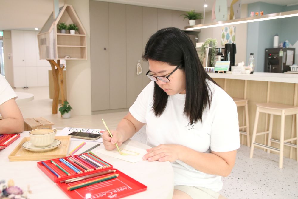 透過每週漸進式讓孩子適應空間環境,慢慢可以獨立與老師們待在教室中參與課程活動,趁著這個空檔,就是爸爸媽媽爺爺奶奶自己的me time囉!每週除了可以來杯不同的冷熱飲品,趁著有老師們幫忙顧著孩子的時間,一起參加每週不同的療癒活動,或者與社工聊聊育兒碰到的難題,也可以自己找一個角落,看一本書、稍微休息,準備充飽電、在育兒路上再出發!