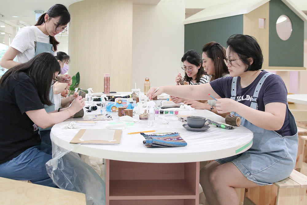 透過每週漸進式讓孩子適應空間環境,慢慢可以獨立與老師們待在教室中參與課程活動,趁著這個空檔,就是爸爸媽媽爺爺奶奶自己的me time囉!每週除了可以來杯不同的冷熱飲品,趁著有老師們幫忙顧著孩子的時間,一起參加每週不同的療癒活動,或者與社工聊聊育兒碰到的難題,也可以自己找一個角落,看一本書、稍微休息,準備充飽電、在育兒路上再出發!