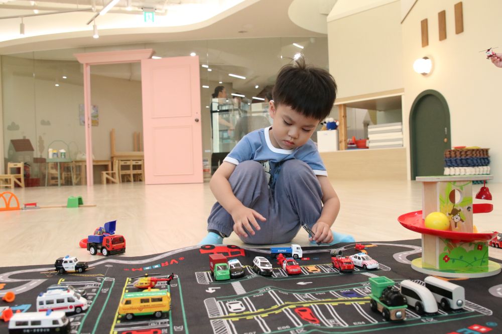 孩子們在大教室內的活動會扣著「水果」的主題,每週不同的主題繪本故事,依當週主題進行好玩的遊戲與活動。每週會運用不同的媒材,讓孩子進行DIY,四週完成後,會集結成一本小書唷!每堂課都有孩子分區域的free play時間,在寬敞的教室中,交給他們自由探索,選擇最喜歡的角落時間,暢遊自己的play time!