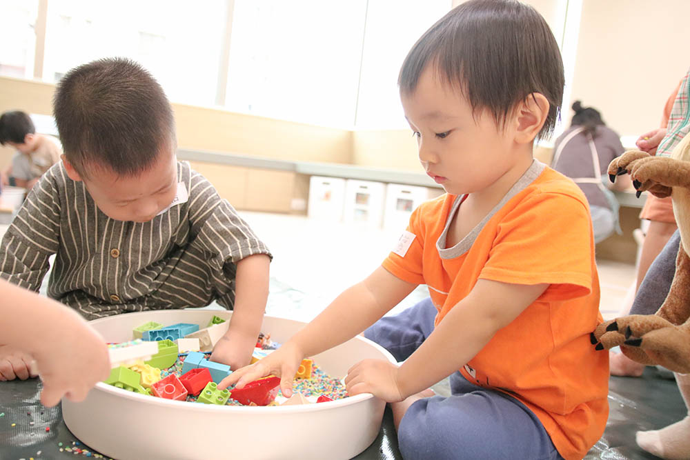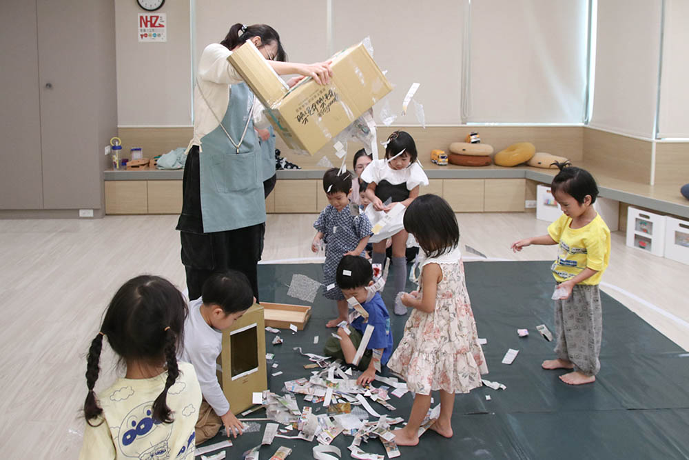 一起身體動一動、暖暖身跳個舞,再來是最喜歡的繪本故事,接著會依照繪本延伸一起玩遊戲與活動,進入自由探索空間的時光後,大家會再一起使用不同的媒材進行創作,最後結束前,大家再一起收玩具整理環境,跳舞一起說再見囉!