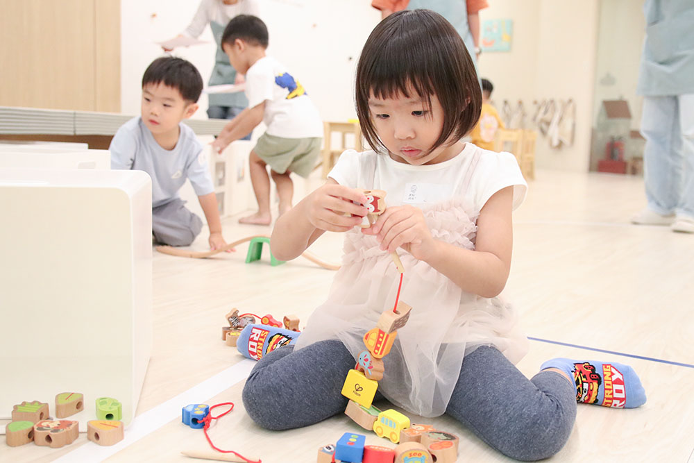 孩子們在大教室內的活動會扣著「水果」的主題,每週不同的主題繪本故事,依當週主題進行好玩的遊戲與活動。每週會運用不同的媒材,讓孩子進行DIY,四週完成後,會集結成一本小書唷!每堂課都有孩子分區域的free play時間,在寬敞的教室中,交給他們自由探索,選擇最喜歡的角落時間,暢遊自己的play time!