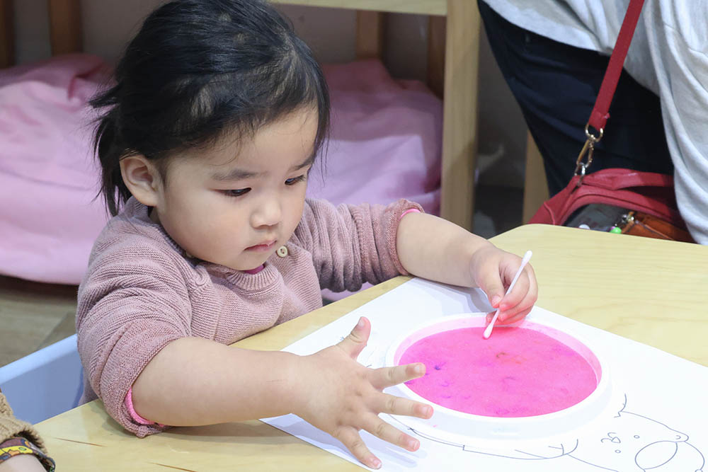 透過每週漸進式讓孩子適應空間環境,慢慢可以獨立與老師待在教室中參與課程活動,趁著這個空檔,就是爸爸媽媽爺爺奶奶的me time囉!每週除了可以來杯不同的冷熱飲品,趁著老師們幫忙顧著孩子時間,一起參加每週不同的療癒活動,或者與親職師聊聊育兒碰到的難題,或者也可以自己找一個角落,看一本書、稍微休息,準備充飽電、在育兒路上再出發!