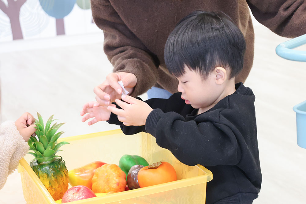 孩子在大教室內的活動會扣著「水果」主題,每週不同主題繪本故事,讓孩子認識各式各樣水果,這次有草莓、木瓜、水梨...等不同水果,依當週主題進行好玩的遊戲與活動,會運用不同媒材,讓孩子進行DIY,8週完成後,會集結成一本小書唷!每堂課都有孩子分區域的free play時間,在寬敞的教室中,交給他們自由探索,選擇最喜歡的角落時間,暢遊自己的play time!