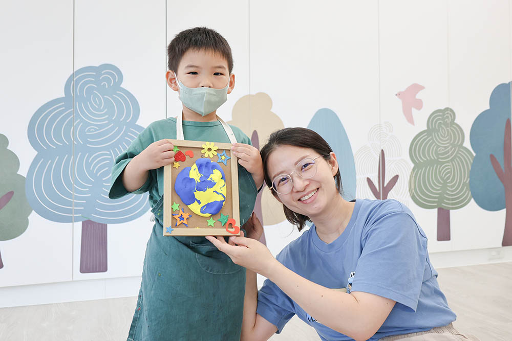 緊鄰著幼兒教室,孩子可以隨時看到家長們上課的狀態,規劃中島與舒適的餐桌,家長們可以坐著高腳椅,邊享用飲品,也一起聊聊育兒點滴,幫彼此在育兒的路上加油打氣!